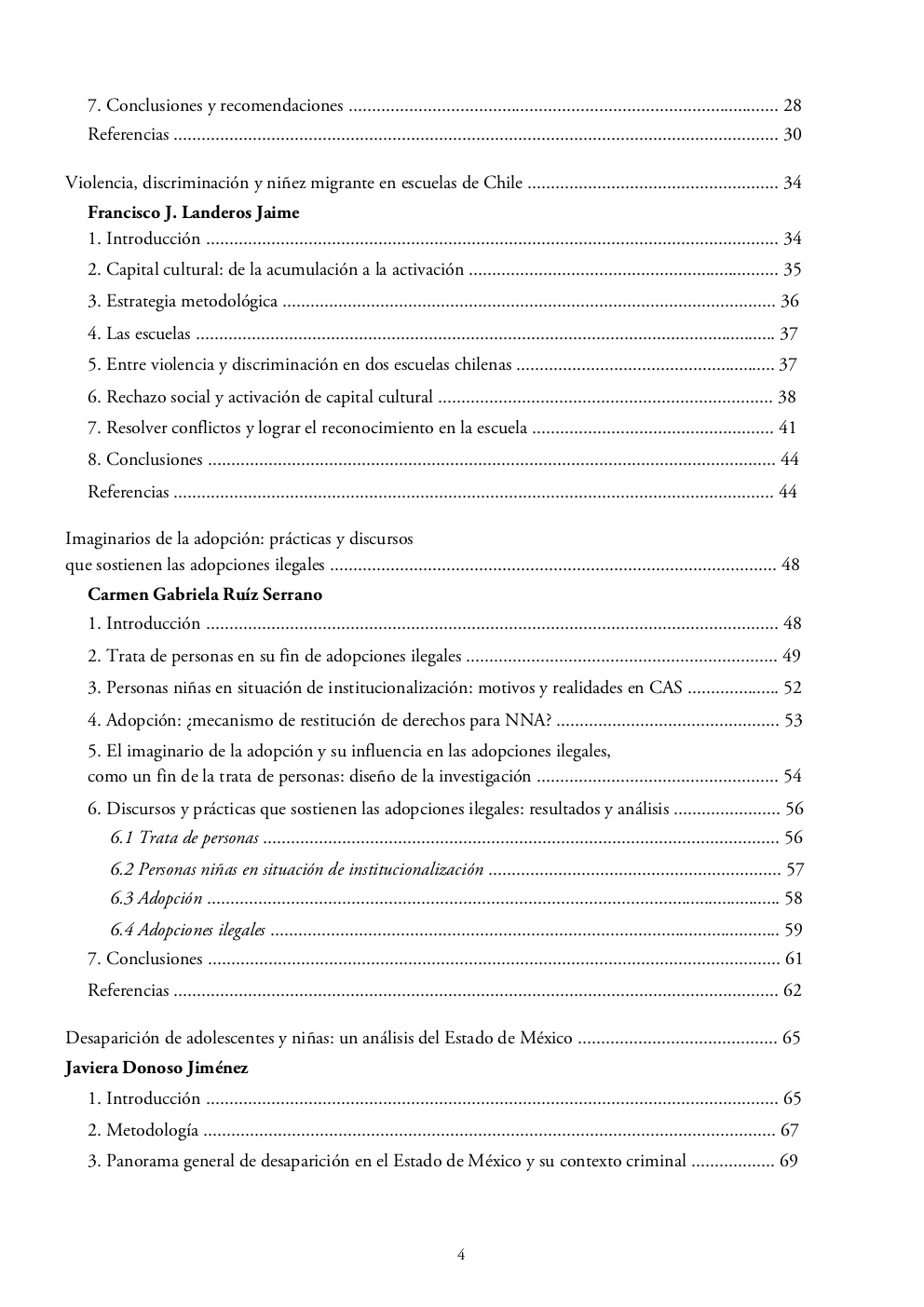Los capítulos que componen este libro buscan estudiar las violencias perpetradas contra las niñas, niños y jóvenes, para entenderles desde su aquí y ahora, desde el actual lugar como actores sociales y dar cuenta de las distintas formas en que estas violencias les atraviesan. Esta revisión no se realizó desde la representación social de un carácter de superioridad arropado por una noción de inocencia, sino desde la preocupación por hacer visible que, como actores con características específicas —como lo son su proceso de desarrollo y socialización, el carácter de interdependencia con un adulto cuidador, la construcción de un marco normativo que protege y limita al mismo tiempo—, experimentan de manera diferenciada estas violencias.