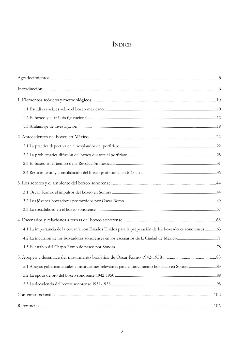 Esta obra explica cómo el movimiento boxístico sonorense se estableció y consolidó mediante distintas relaciones de interdependencia durante el periodo de 1935-1950. Así también analiza las causas del abandono de la afición que inició a principios de los años cincuenta. Así, el estudio del boxeo sonorense, a través de distintas relaciones sociales, constituye un intento de analizar la apropiación del pugilato como práctica deportiva y espectáculo profesional en el estado de Sonora, sobre todo en la ciudad de Hermosillo. También permite vislumbrar la presencia de diferentes modalidades deportivas y otras dimensiones de la vida social como el proceso de modernización de las costumbres y la infraestructura urbana después del primer tercio del siglo XX.